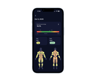Capture front and back body scans to see real progress — not just numbers. ProgressBuddy automatically measures your arms, legs, chest, waist, and more, giving you detailed metrics to stay motivated and focused on your goals.